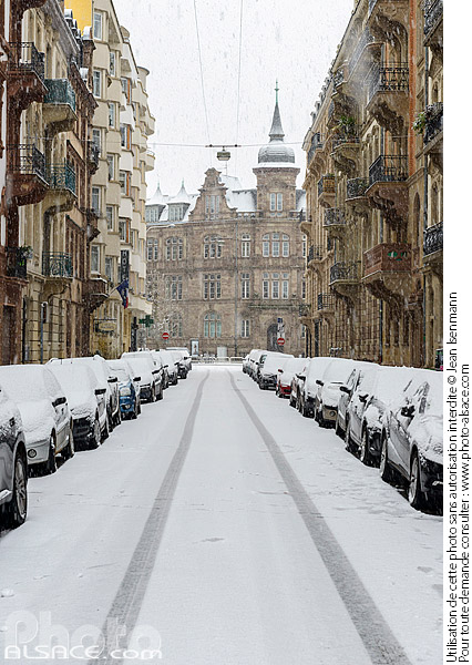 Alsace chute de neige hiver neige neustadt photo vertical quartier allemand Strasbourg ville