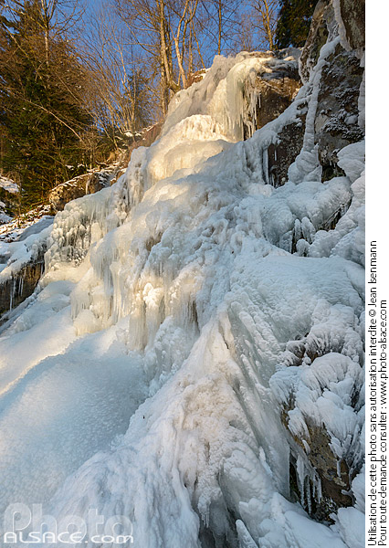 Photo : Cascade de l'Andlau gelée en hiver (Cascade du Kreuzweg ou Cascade du Hohwald), Le Hohwald, Bas-Rhin (67) - (ref. 180228-027) © Jean Isenmann