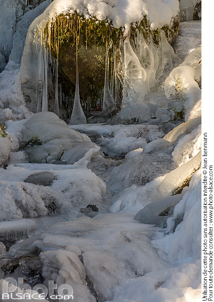 Photo : Cascade de l'Andlau gelée en hiver (Cascade du Kreuzweg ou Cascade du Hohwald), Le Hohwald, Bas-Rhin (67) - (ref. 180228-085) © Jean Isenmann