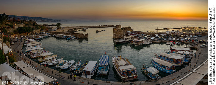 Byblos crepuscule Jbeil Lebanon Liban Méditerranée mer mer mediterranee Mont-Liban photo panoramique port port de peche