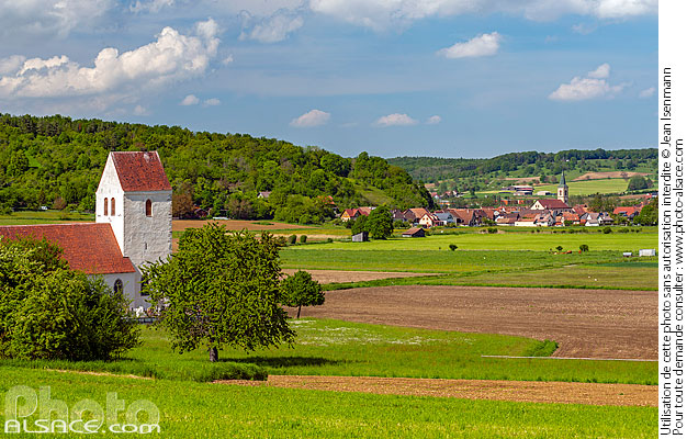 alsace architecture architecture religieuse clocher eglise Eglise Saint-Martin-des-Champs espace rural Oltingue patrimoine photo horizontal printemps Sundgau