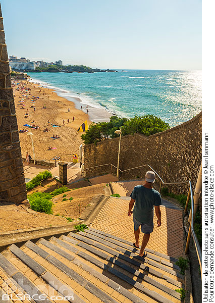 Biarritz Descente de l'océan escalier mer océan atlantique Pays Basque photo vertical plage Plage du Miramar Pyrénées-Atlantiques