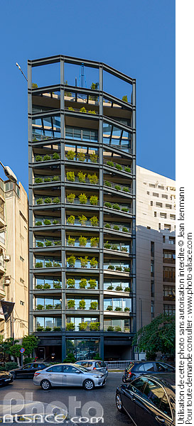 architecture contemporaine Beirut Beyrouth circulation automobile Hamra immeuble immeuble de logement Lebanon Liban photo vertical Proche-Orient Ras Beyrouth rue Rue de Rome voiture