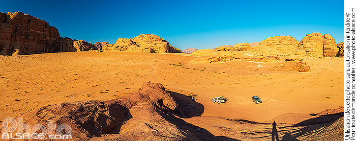 4x4 Aqaba désert Désert du Wadi Rum Jordan Jordanie patrimoine mondial UNESCO paysage paysage de désert photo panoramique Proche-Orient voiture Wadi Rum
