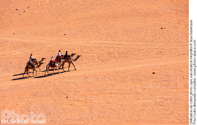 animal Aqaba désert Désert du Wadi Rum dromadaire Jordan Jordanie patrimoine mondial UNESCO paysage paysage de désert photo horizontal Proche-Orient touriste vue de haut Wadi Rum