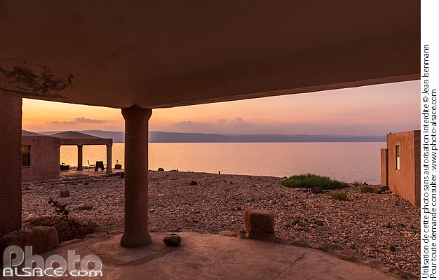 Photo : Hôtel Mujib Chalets au bord de la mer Morte au crépuscule, Madaba, Jordanie - (ref. 191030-265) © Jean Isenmann