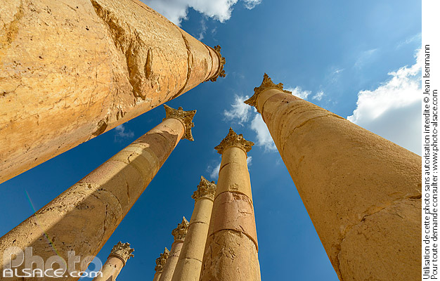 ciel cité antique colonne colonne antique colonne cotinthienne colonne romaine contre-plongee Gérasa insolite Jerash Jordan Jordanie patrimoine photo horizontal Proche-Orient site archeologique temple Temple d'Artémis temple romain