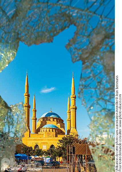 architecture religieuse Beirut Beyrouth Lebanon Liban Marfa Marfaa Mosquée Mohammad Al Amine mosquee patrimoine photo vertical Proche-Orient vitre vitre brisée