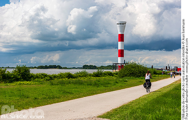 Photo : Piste cyclable le long de l'Elbe et phare de Blankenese, Altona, Hambourg, Allemagne - (ref. 200715-043) © Jean Isenmann