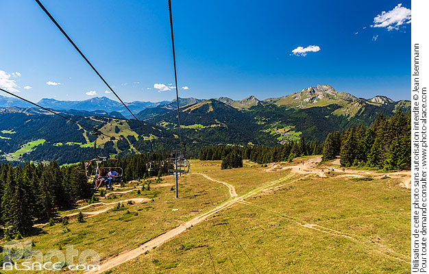 été Alpes bike park Chablais Haute-Savoie Morzine paysage de montagne photo horizontal piste de VTT remontee mecanique Rhône-Alpes Super Morzine télésiège Télésiège de Zore