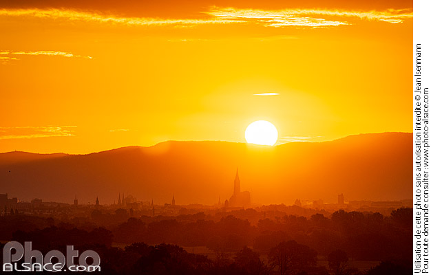 Alsace Bas-Rhin Cathédrale de Strasbourg cathedrale contre-jour Foret-Noire photo horizontal soleil soleil (lever) Strasbourg vue de loin