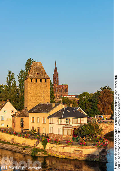 Alsace architecture architecture medievale Cathédrale de Strasbourg cathedrale eau Ill patrimoine patrimoine mondial UNESCO Petite France photo vertical Ponts Couverts Quartier de la Petite France rivière Strasbourg