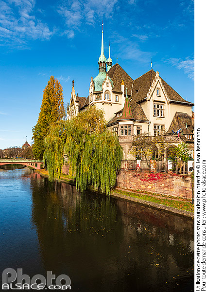 Alsace architecture Canal des faux remparts cours d'eau ecole Fossé du Faux Rempart lycée Lycée des Pontonniers patrimoine photo vertical rivière Strasbourg