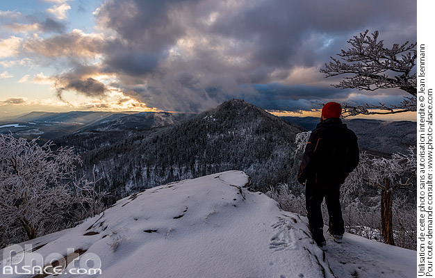 Voir plus de photos : randonneur au sommet du petit donon en hiver
