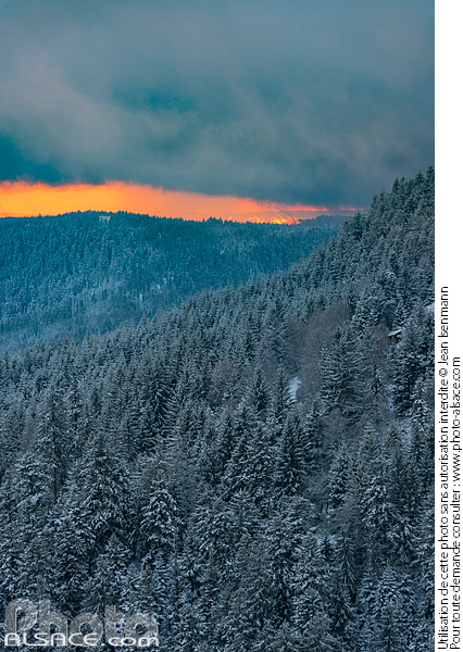 Alsace Bas-Rhin crepuscule forêt Forêt du Donon hiver neige nuage paysage de montagne photo vertical vosges
