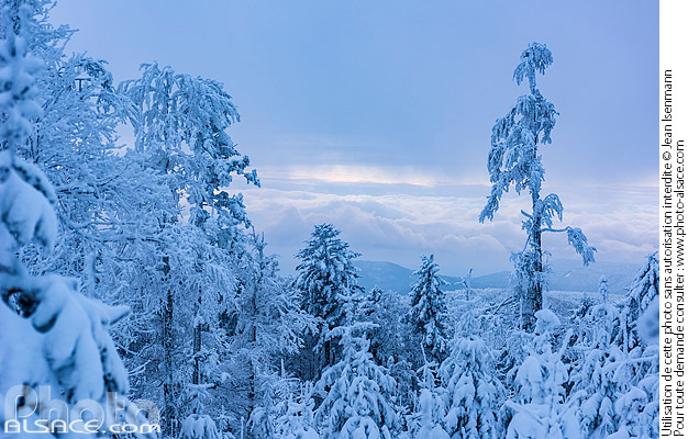 Sapinière en hiver dans la forêt de la ville de Strasbourg, Le Hohwald, Bas-Rhin (67)