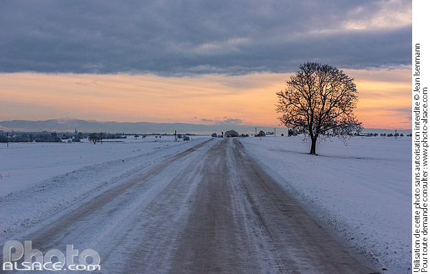 Alsace arbre Bas-Rhin circulation difficile D45 hiver neige photo horizontal route route departementale route enneigée