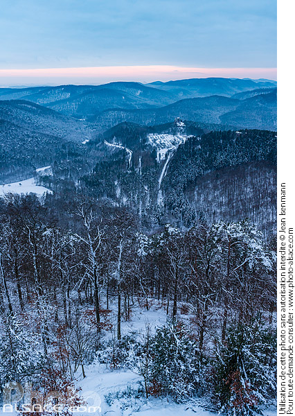 Alsace Bas-Rhin Château du Fleckenstein chateau hiver montagne neige parc naturel parc naturel regional paysage paysage de montagne photo vertical vosges du nord