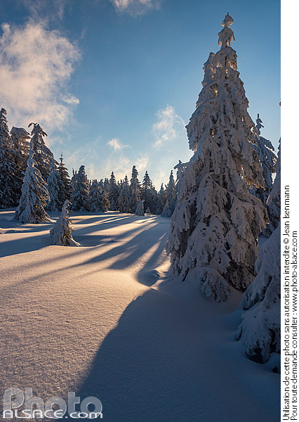 Photo : Sapins sous la neige au Haut Fourneau, Parc naturel régional des Ballons des Vosges, Vosges (88), Lorraine, France