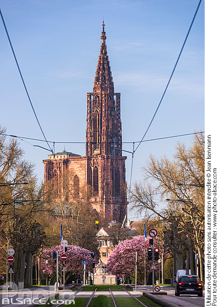 Alsace architecture religieuse Avenue de la Paix Cathédrale de Strasbourg cathedrale floraison patrimoine photo vertical Place de la Republique printemps Strasbourg patrimoine mondial UNESCO
