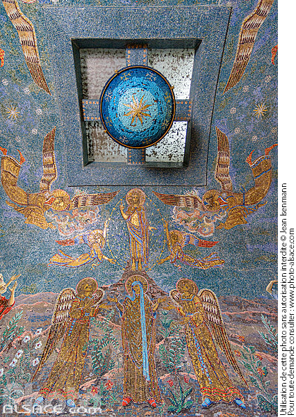 Alsace architecture religieuse art religieux Bas-Rhin chapelle Chapelle des Anges couvent intérieur Mont Sainte-Odile mosaïque patrimoine photo vertical plafond