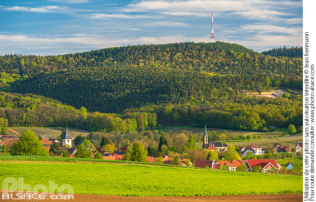 Alsace Bas-Rhin champ Cleebourg Eselsberg foret montagne parc naturel parc naturel regional photo horizontal printemps tour de télécommunication village Vosges du Nord