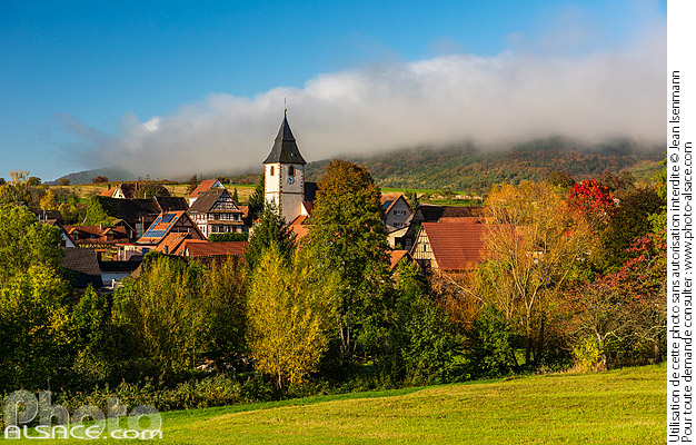Alsace arbre architecture religieuse automne Bas-Rhin Cleebourg eglise Eglise Saint-Blaise parc naturel Parc naturel régional des vosges du nord parc naturel regional patrimoine photo horizontal village