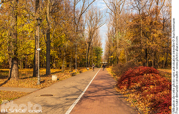 Photo : Piste cyclable dans le parc Na Ksiazecem en automne, Varsovie, Pologne - (ref. 211102-002) © Jean Isenmann