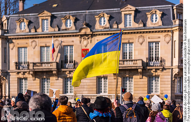 Rassemblement contre l'invasion de l'Ukraine par la Russie devant devant le consulat de Russie à Strasbourg le 06 mars 2022, Strasbourg, Bas-Rhin (67)