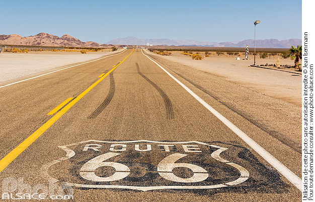 Amboy Californie Etats-Unis marquage au sol National Old Trails Road photo horizontal route Route 66 US Route 66 USA