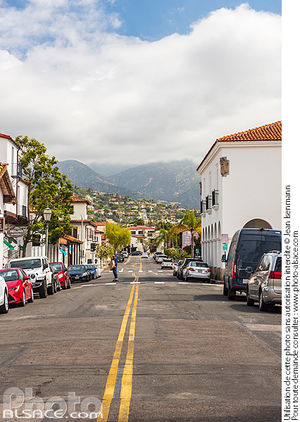 Californie E De La Guerra Street Etats-Unis maison montagne nuage photo vertical rue Santa Barbara stationnement USA ville voiture