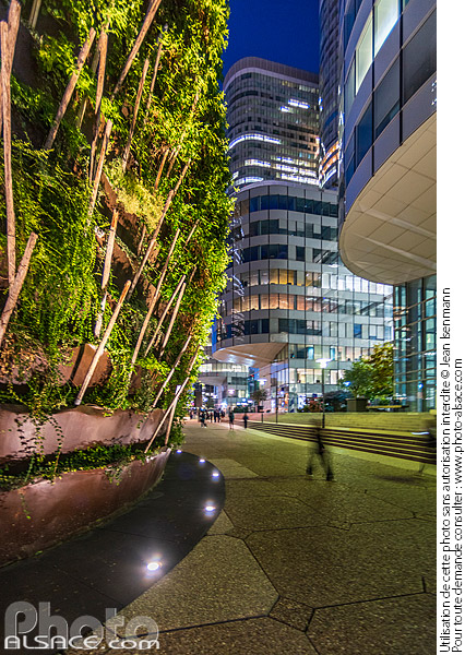 Courbevoie Grand Paris Hauts-de-Seine Ile-de-France La Défense mur vegetalise nuit photo vertical quartier d'affaires Quartier de la Défense