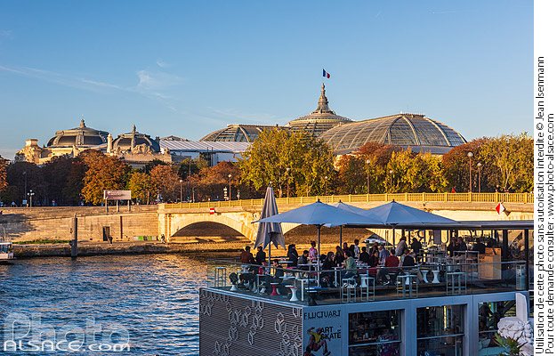 architecture bar bateau cours d'eau fleuve Fluctuart Grand Palais Grand Paris Ile-de-France Paris photo horizontal Seine terrasse