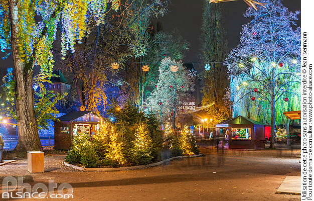 Alsace illumination marche de noel Marche de Noel de Strasbourg nuit petite france photo horizontal Quartier de la Petite France quartier touristique Square Louise Weiss Strasbourg Village de l'Avent