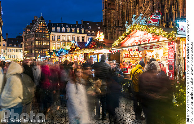 Alsace architecture chalet foule gens Maison Kammerzell marche de noel Marche de Noel de Strasbourg noel nuit patrimoine photo horizontal Place de la Cathédrale Strasbourg touriste