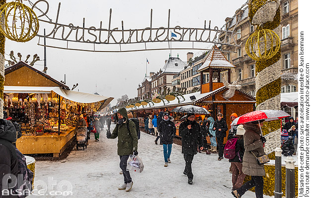 Alsace Christkindelsmärik hiver marche de noel Marche de Noel de Strasbourg neige noel photo horizontal Place Broglie Strasbourg