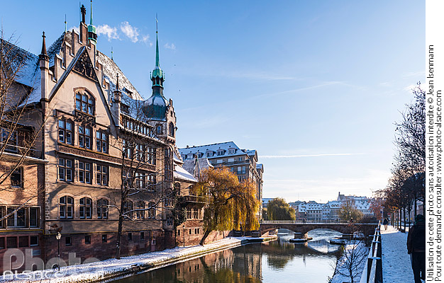 Alsace berge canal Canal du Faux-Rempart cours d'eau hiver Lycée des pontonniers lycee neige patrimoine photo horizontal Strasbourg