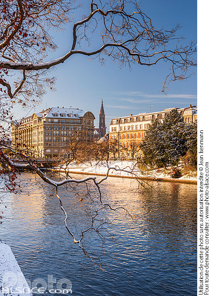 L'Ill et la Cathédrale de Strasbourg en hiver, Strasbourg, Bas-Rhin (67)