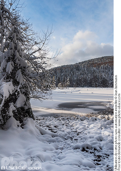 Photo : Lac de Lispach sous la neige en hiver, La Bresse, Parc naturel régional des Ballons des Vosges, Vosges (88), Lorraine, France