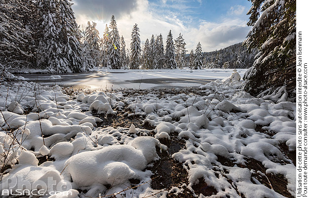Photo : Lac de Lispach sous la neige en hiver, La Bresse, Parc naturel régional des Ballons des Vosges, Vosges (88), Lorraine, France