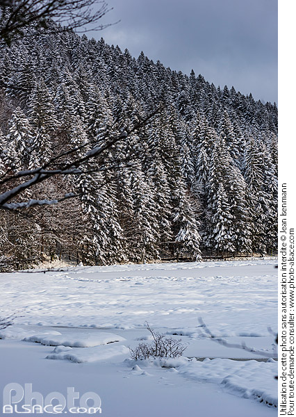 Photo : Lac de Lispach sous la neige en hiver, La Bresse, Parc naturel régional des Ballons des Vosges, Vosges (88), Lorraine, France