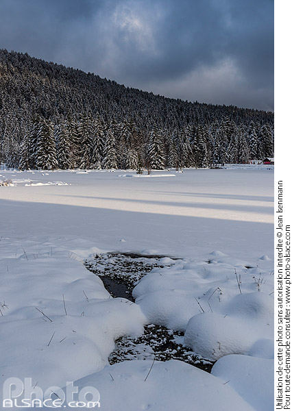 hiver lac Lac de Lispach Lispach Lorraine neige Parc naturel régional des Ballons des Vosges parc naturel regional paysage de montagne paysage hivernal photo vertical tourbiere Vosges