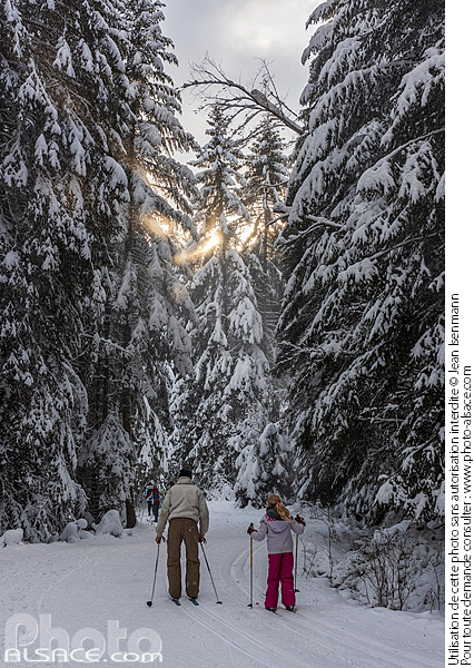 domaine nordique domaine skiable foret hiver Lispach Lorraine neige Parc naturel régional des Ballons des Vosges parc naturel regional photo vertical piste de ski piste de ski nordique sapin ski de fond skieur Vosges