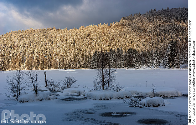 Photo : Lac de Lispach sous la neige en hiver, La Bresse, Parc naturel régional des Ballons des Vosges, Vosges (88), Lorraine, France