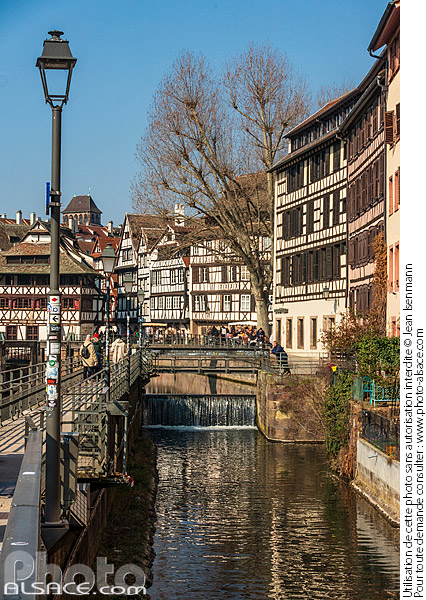 Alsace cascade colombage cours d'eau ecluse Ill maison alsacienne petite france photo vertical Quartier de la Petite France quartier touristique riviere Strasbourg