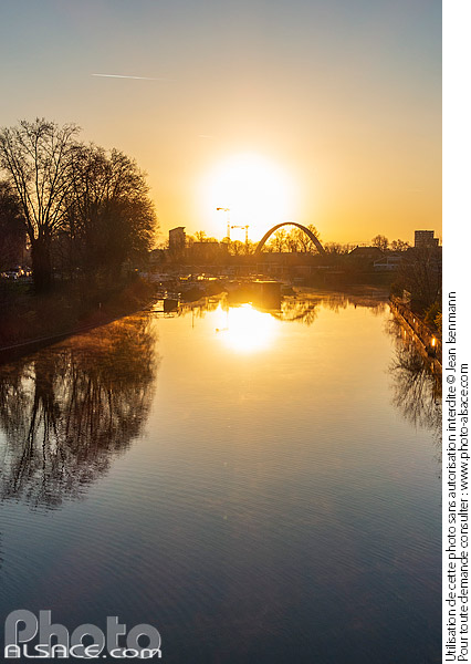 Alsace Bassin Dusuzeau bassin portuaire Canal du Rhone au Rhin eau photo vertical soleil soleil (lever) Strasbourg
