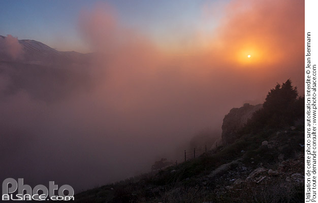 Bcharré brume Lebanon Liban Liban du Nord Liban-Nord montagne patrimoine mondial UNESCO paysage soleil soleil (coucher) Vallée de Qadisha