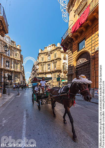 architecture caleche centre-ville cheval immeuble Italia Italie Palerme Palermo patrimoine photo vertical Piazza Villena Quattro Canti Sicile Sicilia tourisme