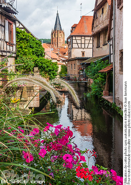 Photo : Le Schlupf (ou la Petite Venise de  Wissembour) vue sur la Lauter et l'abbatiale Saint-Pierre et Paul, Wissembourg, Bas-Rhin (67) - (ref. 230725-007) © Jean Isenmann