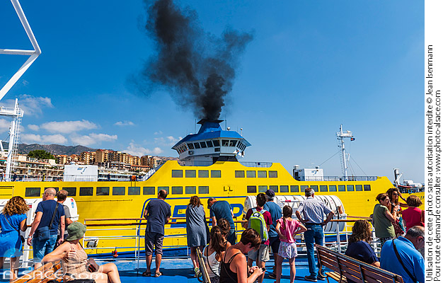 bateau Détroit de Messine ferry fume gens Italia Italie Messina Messine passager photo horizontal pollution Sicile Sicilia transport maritime Villa San Giovani
